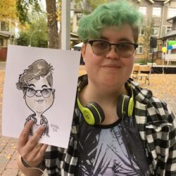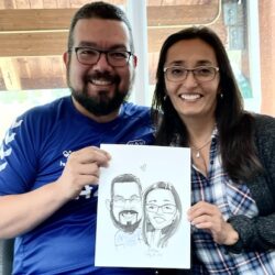With over 35 years of drawing faces Catherine captures a likeness in a simple cartoon portrait way that is not only instantly recognizable but complimentary and fun.