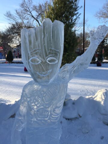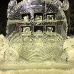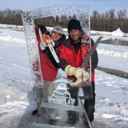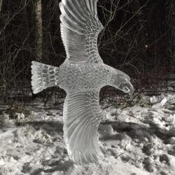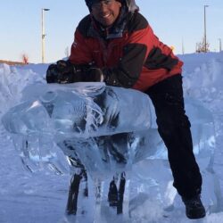 Watching a giant block of ice be transformed into a detailed sculpture is a dazzling sensory experience. There is the roar of the chainsaw with snow spraying to the delicate artistry of the chisels, drills and torches as the creations reveal themselves. Inside or outside Kelly produces unforgettable customized works of art with his witty and engaging ice carving performances.