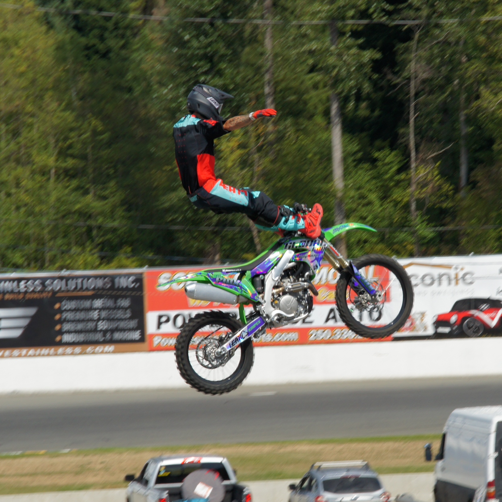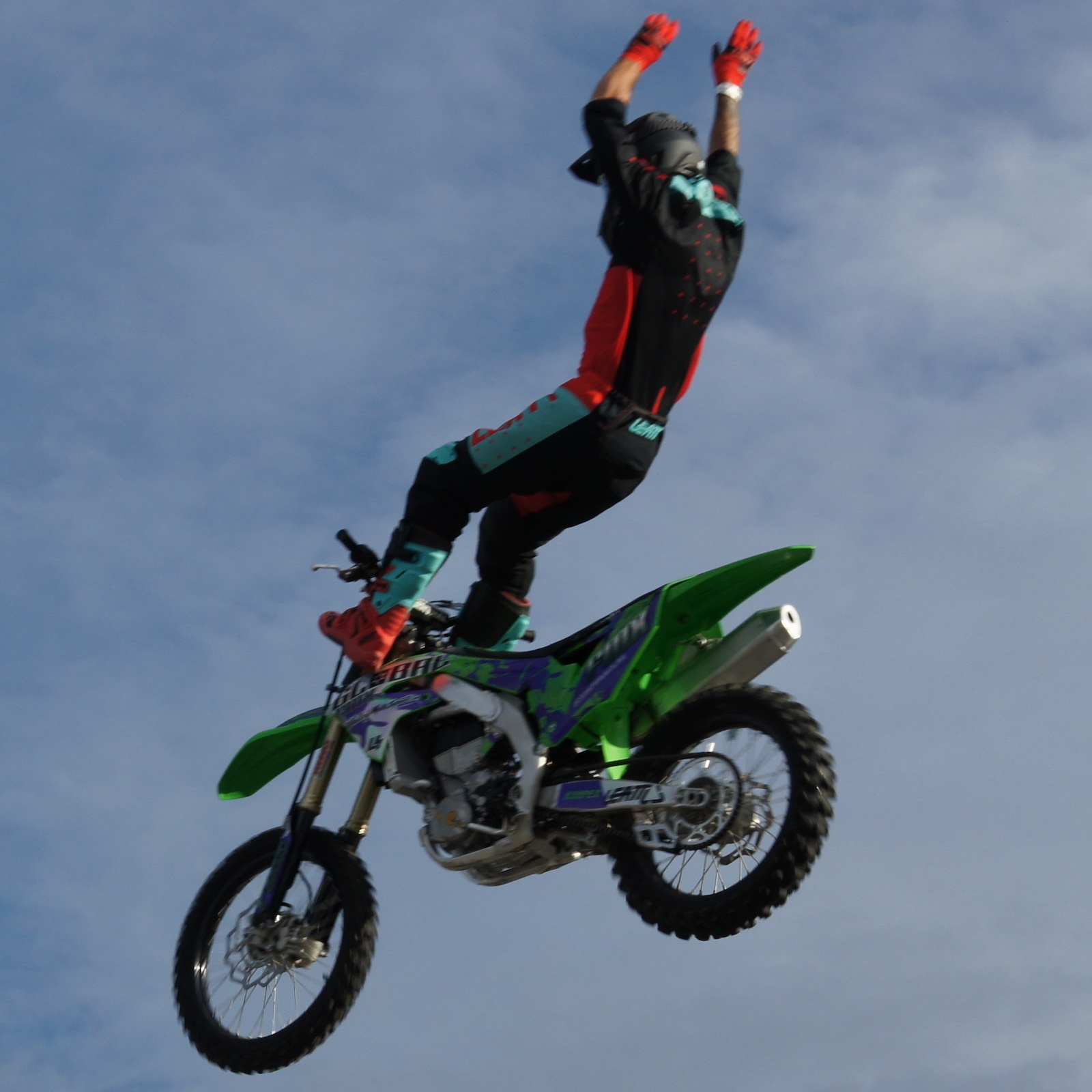 With their state-of-the-art, fully portable freestyle motocross ramps, they are able to set up and perform in a matter of minutes, on any surface and with no landscape damage. These ramps allow them to perform at a wide variety of events such as fairs and exhibitions, monster truck shows, concerts, grand openings and any special event looking to attract a crowd. They also host a “Pit Party” where fans can meet the riders, get an autograph, and see the bikes up close.