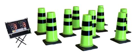cones as they light up. You get to compete against your friends and scoring is shown on a digital score clock.