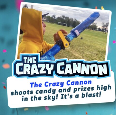 Crazy Cannon uses air pressure to fire objects across a field. It’s loaded with candy and the kids get to have an old-fashioned candy scramble with a modern twist. Parents, especially dads really enjoy firing the cannon! Comes with everything you need, including the candy!