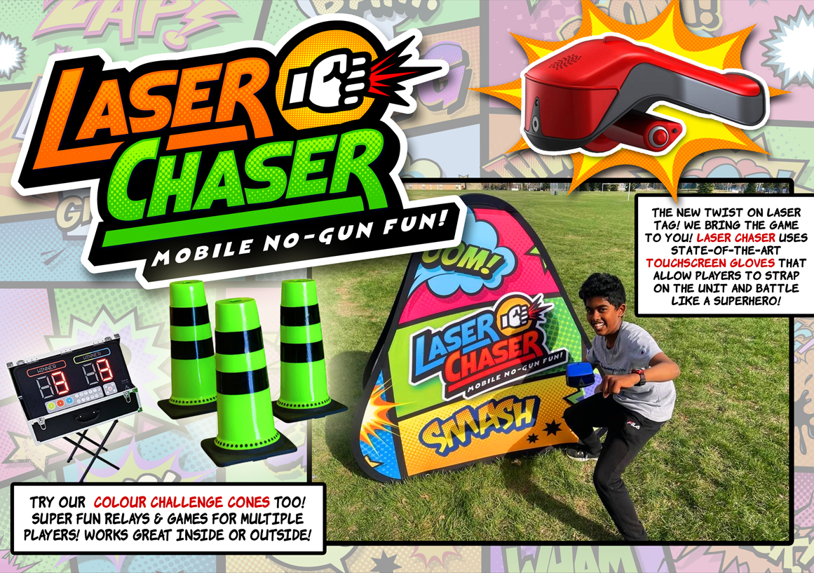 A mobile version of Laser Tag that brings the game to you. The game is positive focused and uses “non gun” laser gloves that come with touch screens, 3 super hero abilities and shield. Accommodates 20 participants who each wear a glove and navigate an obstacle course with bunkers. Game Marshalls will help children with laser gun operation and monitor game length (recommend 5 – 10 minutes per game) insuring lots of kids are able to participate.