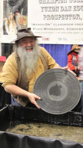 Yukon Dan (Dan Moore) a world champion gold panner presents a one-of-a-kind gold panning workshop for all ages. In his workshops, Dan connects gold panning with earth science, geology, natural resources, and the history of gold panning in Canada. Using two portable, gravel-lined “streams”, participants will have the opportunity to try gold panning for themselves! He also brings a marvelous display of panning equipment and gold nuggets.